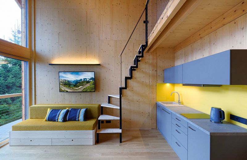 W tym apartamencie jest do dyspozycji łóżko małżeńskie oraz sofa rozkładana dla kolejnych 2 osób. Na piętrze jest kolejne miejsce do spania na dużych materacach dla 3 osób.